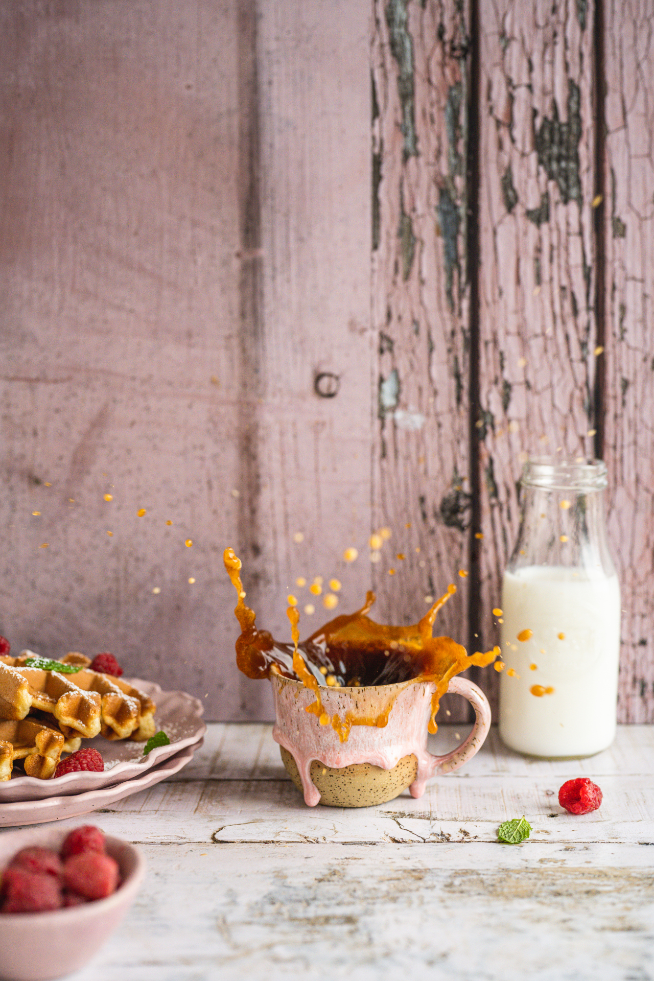 Tło fotograficzne do fotografii kulinarnej i produktowej z kolekcji MBackdrops x Mienta. Tło Stay positive to wydruk wysokiej jakości zdjęcia na sztywnym materiale winylowym. Tło ma grubość 3 mm, jest lekkie, matowe, nie przepuszcza światła, nie ma zapachu plastiku.
