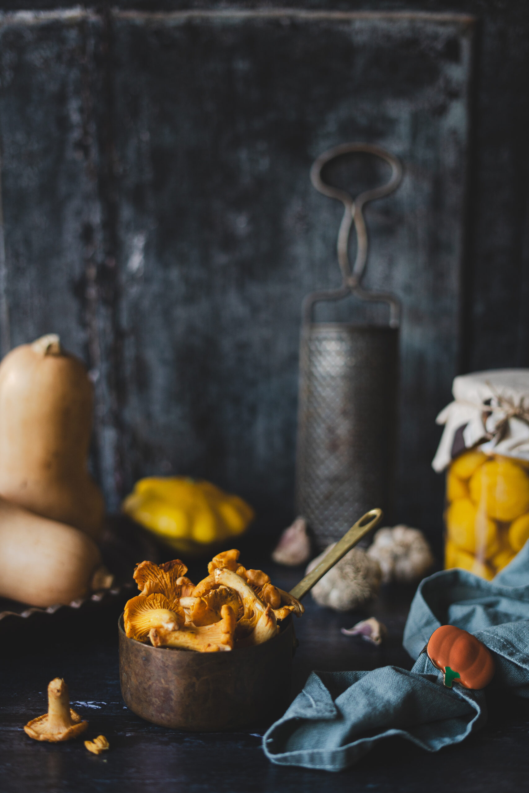Widzimy na nim krem dyni, pieczone warzywa, grzyby, świeże zioła, domowe ciasta, drewniane i cynowe propsy, klimat zapalonych świec, naturalnych materiałów i ciepłych, jesiennych swetrów.