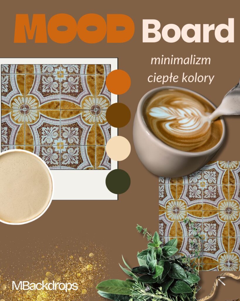 Golden Tiles to dekoracyjne, ciepłe tło fotograficzne przedstawiające portugalskie kafelki azulejos w klimacie vintage. Ornamentowy wzór w odcieniach miodowego brązu, karmelu i złamanej bieli nadaje zdjęciom charakter, głębię i przyjemne, domowe ciepło.