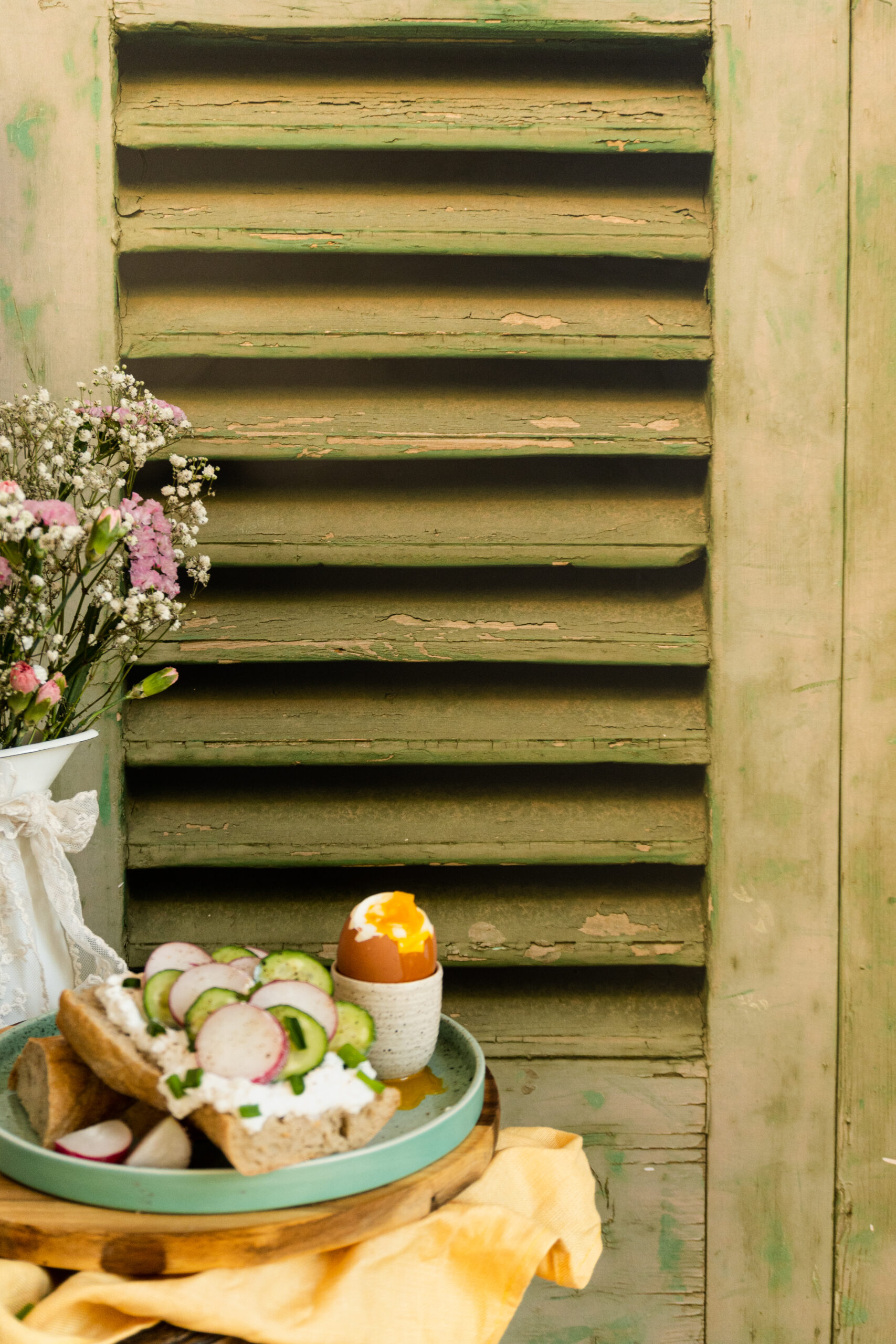 Tło fotograficzne przedstawiające stare okiennice w kolorze zielonym. Więc wiosennie, klasycznie i retro! Nie, nie pisało tego AI. Możesz robić na nim zdjęcia w stylu flat lay, ale też standardowo używać go jako tylne tło. Kochamy głębię, którą daje cień okiennic, więc dużo nie trzeba, żeby zdjęcie przykuło uwagę.